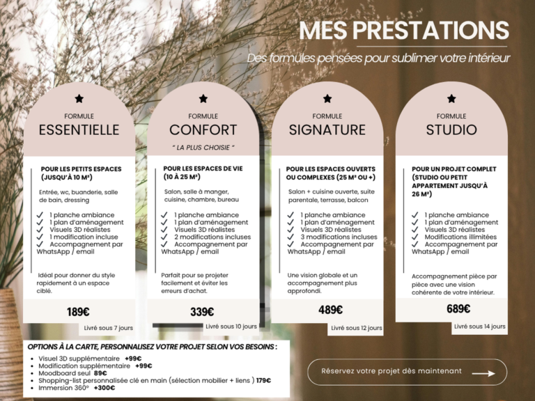 - Un rendez-vous à domicile ou à distance pour faire le point sur vos goûts et vos envies.